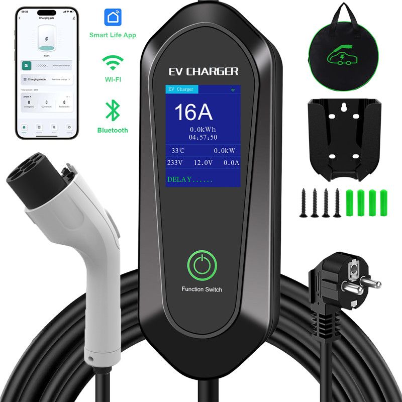 El cargador RTFLY EV ofrece capacidades de carga versátiles de 8A/10A/13/16Amp y es compatible con Schuko, BS, NEMA y otros tomacorrientes. Funciona en el rango de 185 V-255 V, lo que proporciona un rendimiento eficiente y adaptable para una carga rápida de vehículos eléctricos.